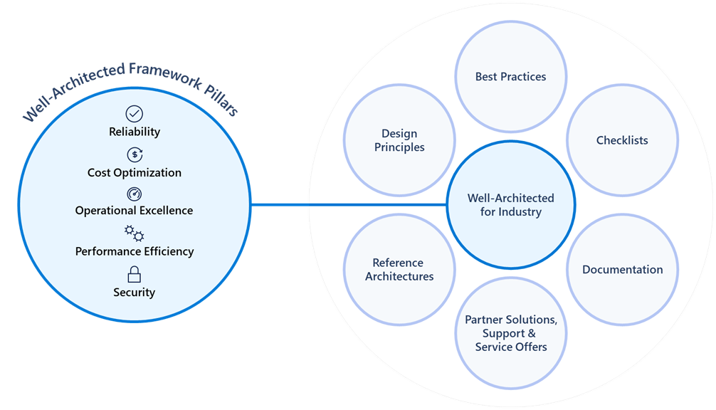 Complementing the CAF and Landing Zone concepts is the Azure Well-Architected Framework (WAF). While CAF guides the overall adoption journey and Landing Zones provide the foundational environment, the WAF offers guiding tenets to improve the quality of individual applications and workloads running on Azure. It helps evaluate workloads against Azure best practices and provides actionable guidance for improvement.